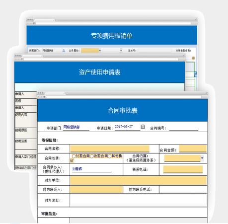通過(guò)遠(yuǎn)程電子審批方式、成為組織制度規(guī)范落地的展現(xiàn)工具,充分體現(xiàn)組織 規(guī)范性、標(biāo)準(zhǔn)化、個(gè)性化的管理特色多樣化的審批模板:通過(guò)可視化的表單 設(shè)計(jì),可以構(gòu)建人事檔案管理、考勤管理、財(cái)務(wù)報(bào)銷管理、合同訂單管理、 車(chē)輛及辦公用品領(lǐng)用等個(gè)性化公司表單流程。